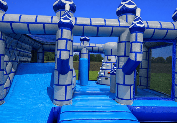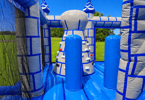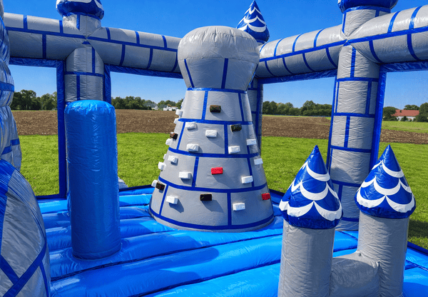 Unsere Ritterburg Playground wird der Kindermagnet auf Ihrer Party. Hindernisse, ein Kletterturm, eine Rutsche und natürlich ausreichend Hüpffläche laden die Kinder zu ausgelassenem Spielen und Toben ein. Sicherheitsnetze an allen Seiten sorgen dafür, dass keines der Kinder beim Spielen aus der Hüpfburg fällt, Sie von außen aber stets den Überblick über das Geschehen im inneren behalten.